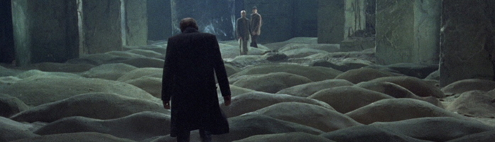 Um cavaleiro regressa das Cruzadas e encontra a sua terra natal devastada pela peste. Confessa-se numa igreja rodeada de cadáveres.