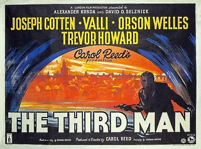 O film noir de Carol Reed, O Terceiro Homem, de 1949, captou o espírito fraturado da Europa após a Segunda Guerra Mundial. De forma invulgar para a época, Reed filmou-o em parte em Viena, num local danificado pelas bombas. Poças dramáticas de luz e sombra, e ângulos de câmara inclinados, transformam a cidade num cenário de pesadelo para a história do traficante Harry Lime, interpretado por Orson Welles. A música de cítara de Anton Karas, que Reed encontrou durante as filmagens em Viena, ecoa por todo o filme. O argumento foi desenvolvido pelo romancista Graham Greene a partir da sua própria novela. O argumento surgiu de um simples pensamento de Greene: "Vi um homem a descer a rua cujo funeral tinha assistido recentemente." Esta ideia inspirou a história de um homem que finge a sua própria morte.